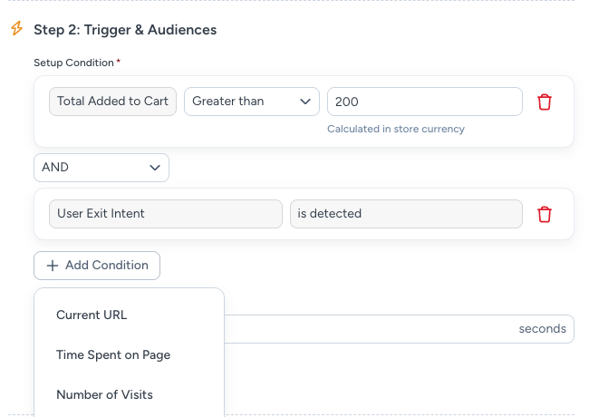 | Exit Intent | Fire when the customer shows signs of leaving | — |