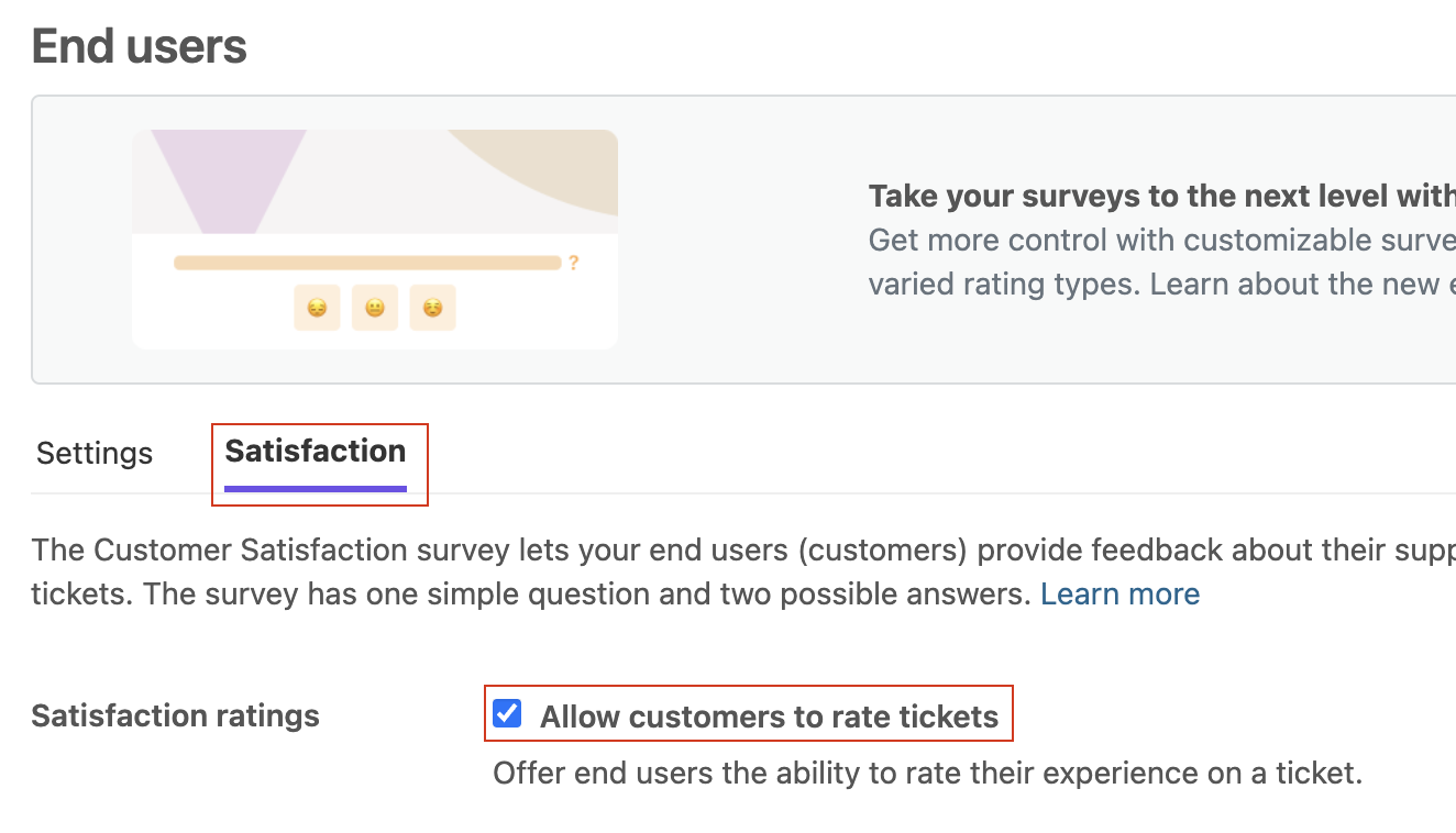 When setting up a new Zendesk environment, the new CSAT survey is enabled by default.
