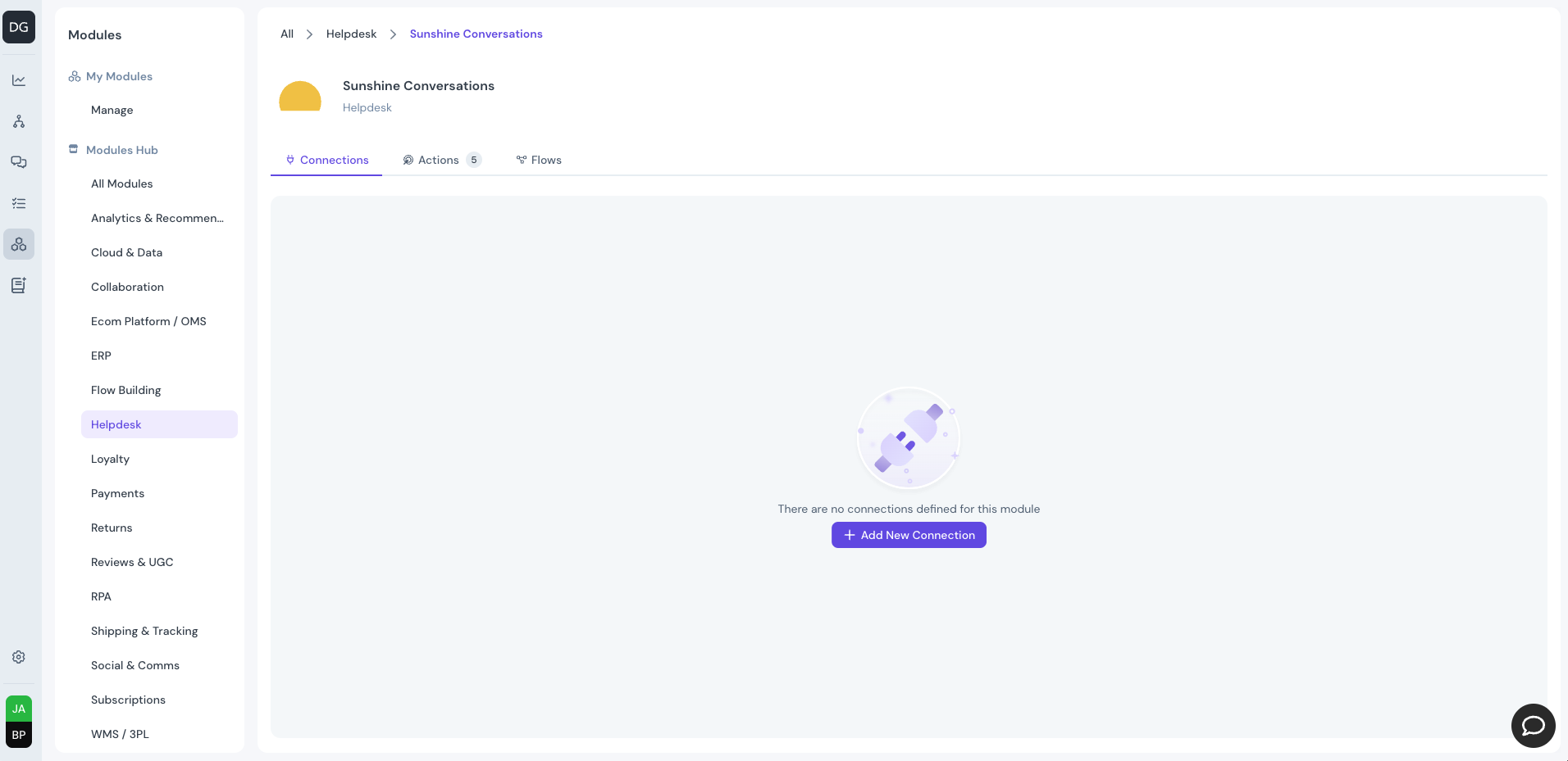 Go to modules and select Sunshine Conversations:
